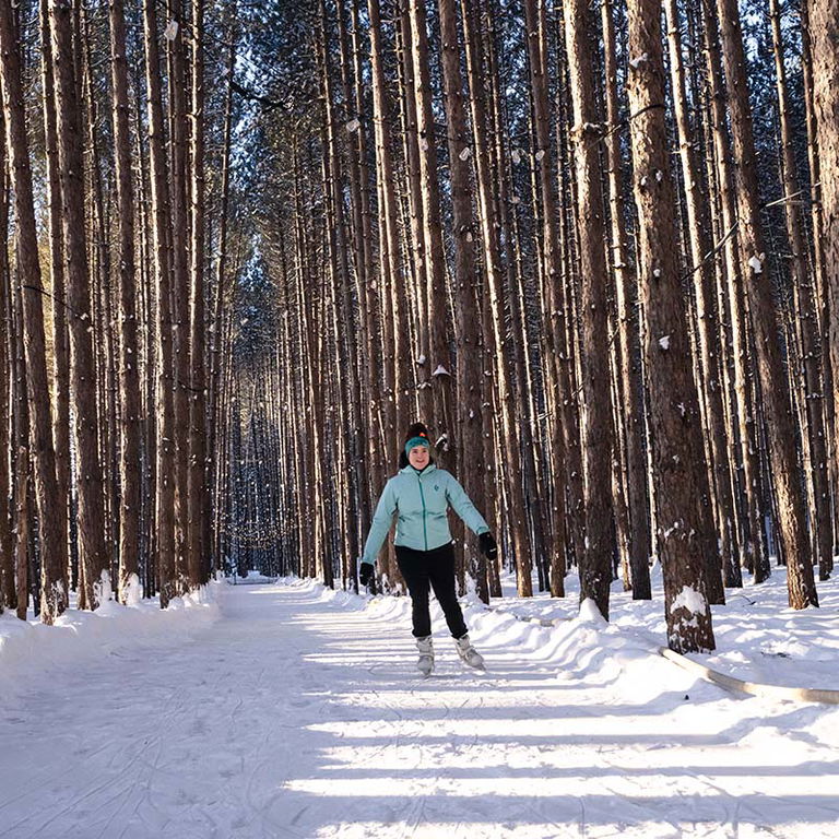 - Sentiers de randonnée et de vélo pour l’été et sentiers de ski de fond, raquette et fat bike l’hiver dans la forêt de pins