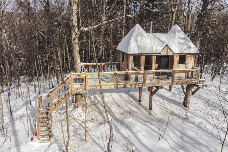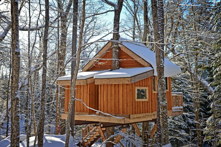 Venez vivre une expérience de prêt-à-camper 4 saisons unique dans un refuge perché au bord de l’eau, dans un parc protégé. Les refuges pouvant accueillir jusqu’à 6 personnes sont isolés pour l’hiver et chauffés au bois. Ils sont munis de lits confortables et sont équipés pour cuisiner. Situé près de Mont-Tremblant, venez profiter de ce parc de nature : baignade, location d’embarcations, pêche, 36 km de sentiers en forêt, raquettes, ski de fond. Ne manquez pas le sentier Le Riverain, une passerelle en milieu aquatique menant à un grand pavillon de jardin, idéal pour un pique-nique en famille. L’hiver, profitez des sentiers de raquette pour ensuite vous réchauffer à côté d’un bon feu de camp. Les chiens sont les bienvenus.